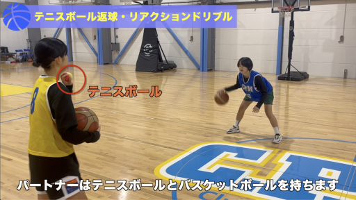 ドリブルをしている最中にテニスボールを組み合わせる練習は様々な形で実施されています。このドリルで習得したい能力は、コーディネーション能力の能力の中で「反応能力、定位能力、識別能力」をイメージしています。2025/10/10