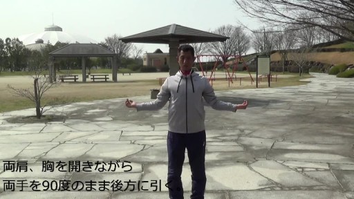 手が後ろに行った時に両肘を脇から出来るだけ離さず、胸を張り、背部で肩甲骨を