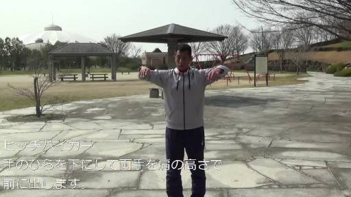 1.肘を伸ばした状態で両手を前に出し(前にならえのイメージ)